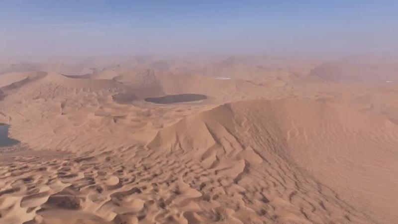 △以直升機(jī)航拍視角,全景呈現(xiàn)巴丹吉林沙漠的壯闊風(fēng)光。