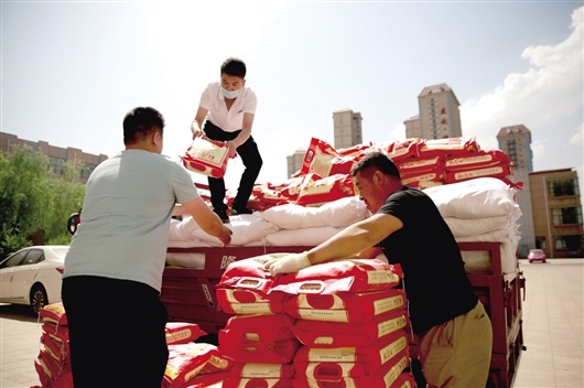 聽說這批物資是捐贈(zèng)給學(xué)校的,拉載物資的工人以及尚宇的朋友、家人紛紛前來幫助搬運(yùn),“我們帶著120袋優(yōu)質(zhì)大米、200袋面、100箱有機(jī)蔬菜,慰問高新一中辛勤的老師,這是尚宇以個(gè)人的名義捐贈(zèng)的。老師們無微不至地為學(xué)生付出,在這個(gè)特殊時(shí)期,希望通過慰問來表達(dá)對老師們的敬意?!北簧杏畹男袨楦袆?dòng),前來幫助搬運(yùn)物資的李聰亮介紹。
