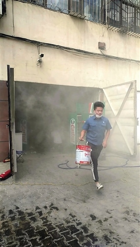 “我家車(chē)庫(kù)著火了,能不能用熱力站的水幫我滅火?”張霖和徐小煒剛跑出大門(mén)口,就碰到了慌慌張張的居民。兩人立刻將皮管從窗戶(hù)伸到外面,對(duì)著車(chē)庫(kù)噴水。由于不清楚用戶(hù)車(chē)庫(kù)內(nèi)有什么易燃物品,發(fā)現(xiàn)火勢(shì)雖被控制但并沒(méi)有完全熄滅,兩人又取上站內(nèi)常備的滅火器,一邊熟練地使用一邊分析火情,并戴上防塵面罩在確保安全的情況下進(jìn)入車(chē)庫(kù)內(nèi),第一時(shí)間撲滅了火源。