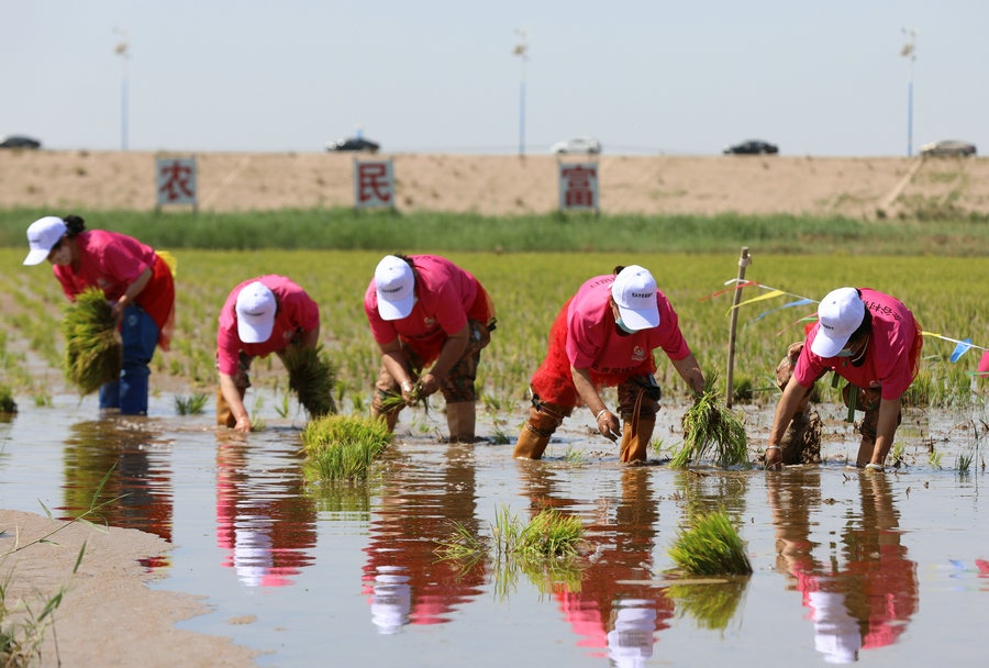 6月18日,2022年包頭市首屆插秧節(jié)暨“網(wǎng)約游東河·玩轉(zhuǎn)新農(nóng)村”主題活動(dòng)在此間舉行。當(dāng)天,來自東河區(qū)的20支插秧隊(duì)伍,走進(jìn)烈日炎炎的水田,挽起褲管,穿上水靴,進(jìn)行了一場(chǎng)別開生面的插秧大賽。