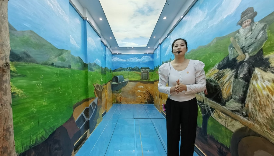 王大漢村村史博物館內(nèi),講解員正在講解黃河“水旱碼頭” 記者 張楊攝影