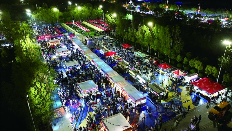 5月17日晚,杭錦后旗體育公園內(nèi)人潮涌動(dòng),杭錦后旗“5·19中國旅游日”嗨音尋味暨“陜壩味道”大型美食活動(dòng)在這里開幕。