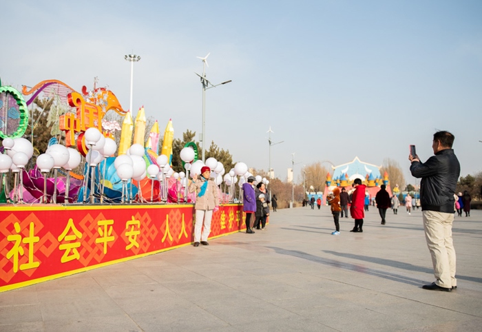 2月5日,在呼和浩特市阿爾泰游樂(lè)園,市民與春節(jié)元素的花燈合影留念。正月初一,人們來(lái)到年味十足的廣場(chǎng)、公園逛一逛,在花燈前合影留念,定格幸福瞬間。