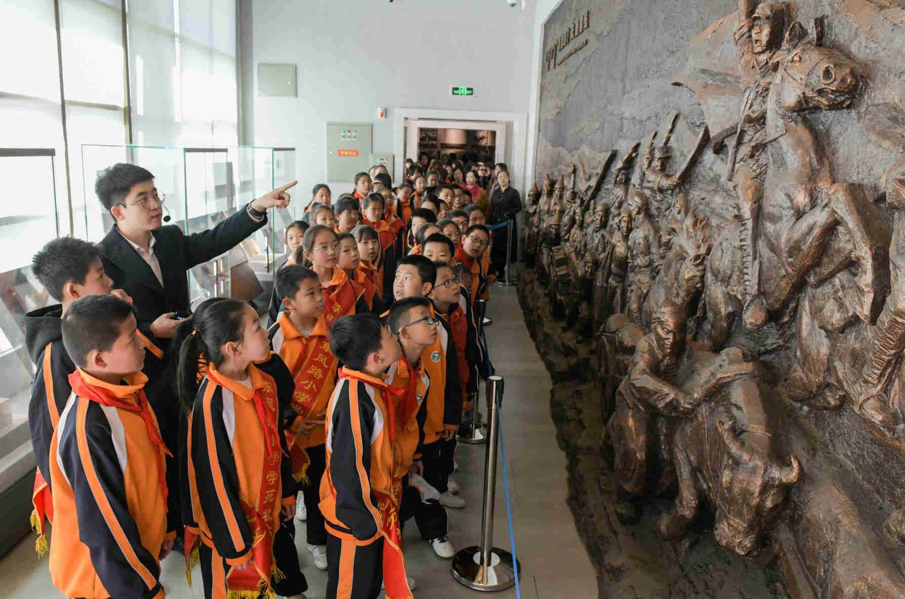 3月30日,講解員為小學生們講述革命故事。當日,呼和浩特市賽罕區(qū)東風路小學學苑校區(qū)在烏蘭夫紀念館開展了一場主題為“緬懷先烈告慰英雄做時代新人”的教育實踐活動。孩子們在聆聽革命故事、學習革命先烈光榮事跡中,接受了一次生動的愛國主義教育。(內(nèi)蒙古日報社融媒體記者 懷特烏勒斯攝)  3月30日,講解員為小學生們講述革命故事。當日,呼和浩特市賽罕區(qū)東風路小學學苑校區(qū)在烏蘭夫紀念館開展了一場主題為“緬懷先烈告慰英雄做時代新人”的教育實踐活動。孩子們在聆聽革命故事、學習革命先烈光榮事跡中,接受了一次生動的愛國主義教育。(內(nèi)蒙古日報社融媒體記者 懷特烏勒斯攝)
