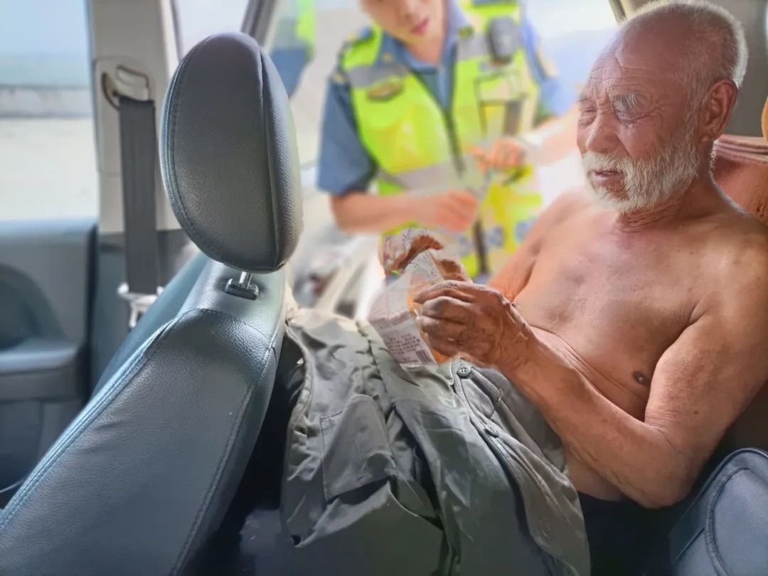 7月27日10時10分許,內蒙古自治區(qū)公路路政執(zhí)法監(jiān)察總隊呼和浩特支隊第三大隊的李超和張鵬飛在呼北高速公路巡查過程中,發(fā)現(xiàn)一位老人光著膀子獨自走在高速公路中間,快速行駛的車輛不時從老人身邊呼嘯而過,稍有不慎就可能引發(fā)重大道路交通事故。
