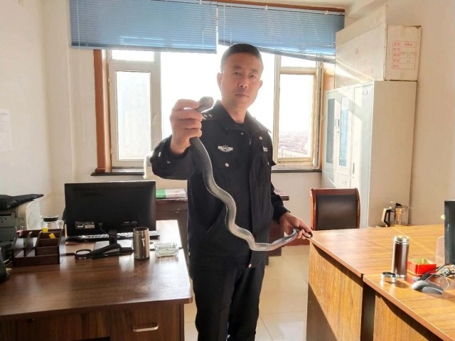 隨后,民警將這條蛇裝入塑料袋,并將其層層包裹,放入警車的后備箱內(nèi)。然而,不可思議的事情發(fā)生了。11月6日,當(dāng)民警打開警車,準(zhǔn)備將其送往呼和浩特市野生動物園時,發(fā)現(xiàn)這條蛇“逃逸”了,包裹其的塑料袋已被咬破。民警在警車內(nèi)四處尋找,卻未能找到它的蹤影。直到11月7日中午時分,民警終于在派出所的院內(nèi)發(fā)現(xiàn)了它的身影,這條黑王錦蛇正在院內(nèi)自由溜達(dá),曬著太陽。