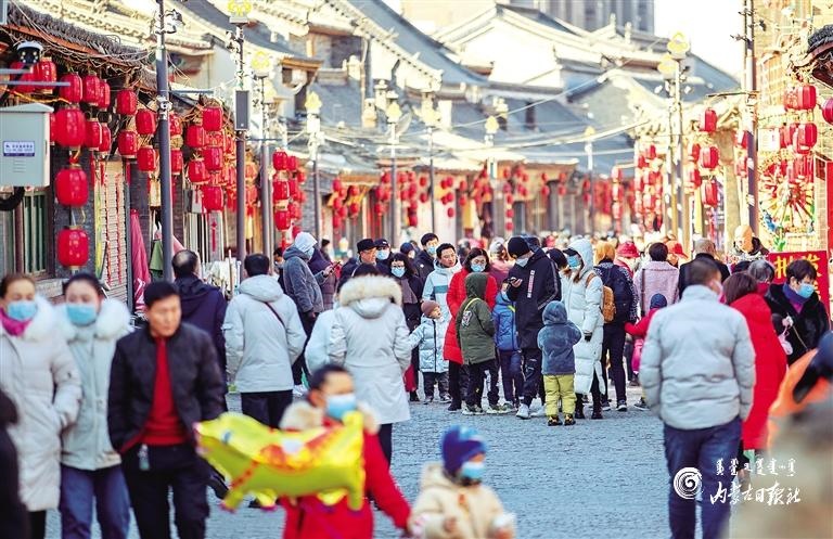 2月15日,人們在呼和浩特市玉泉區(qū)塞上老街游玩。當日是大年初四,呼和浩特市玉泉區(qū)塞上老街、通順大巷、大召步行街充滿了濃濃的年味兒,吸引人們前來逛街賞景。內(nèi)蒙古日報社融媒體記者 王磊 攝