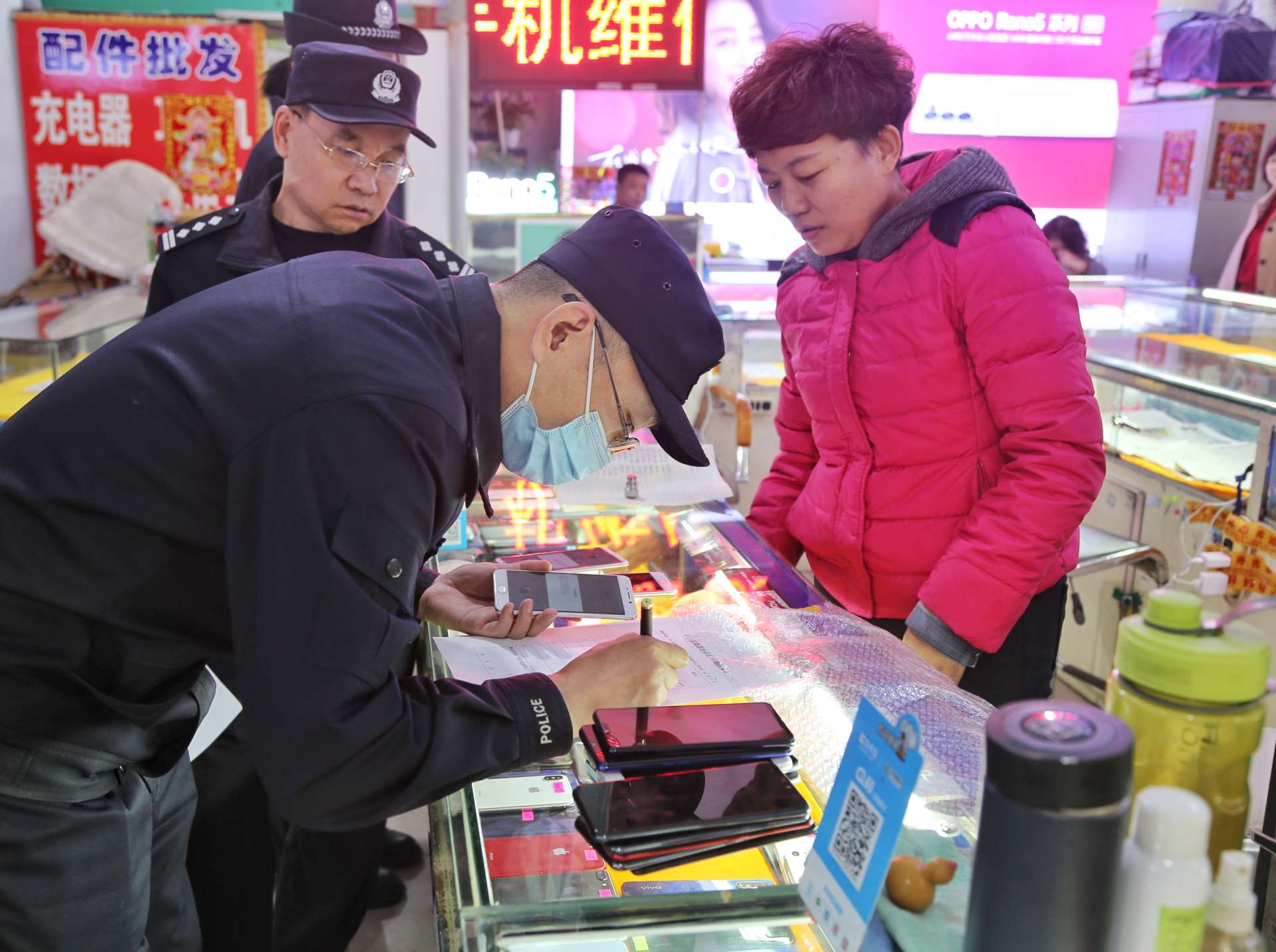 按照預(yù)定方案,行動(dòng)分為四組,兩組對(duì)永和二手手機(jī)市場(chǎng)和眾興二手手機(jī)市場(chǎng)進(jìn)行突擊清查,另兩組以便衣形式對(duì)周圍流動(dòng)收售手機(jī)人員進(jìn)行排查。行動(dòng)期間,民警對(duì)二手手機(jī)銷售店鋪內(nèi)的手機(jī)和工作人員情況進(jìn)行清查,逐一對(duì)照登記臺(tái)賬,嚴(yán)格檢查落實(shí)情況,同時(shí)向經(jīng)營(yíng)業(yè)主及市民進(jìn)行法制宣傳教育。此次行動(dòng)共排查登記二手手機(jī)850部,買賣二手手機(jī)人員50余人,檢查二手手機(jī)商戶22家,暫扣未履行登記手機(jī)30余部。