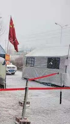 由于從第三輪核酸檢測開始,規(guī)定采樣時間為6:30準時開始,現(xiàn)場工作人員須在5:30前準備就緒。恰逢冷空氣來襲,早晨的氣溫低至零下二十幾度,但所有的人,都恪守崗位,特別是那些采樣員,她們都是來自市區(qū)各大醫(yī)院前來支援武川防疫的醫(yī)護人員,在家里,她們還都是父母的孩子,而此刻,她們都是個頂個的戰(zhàn)士。