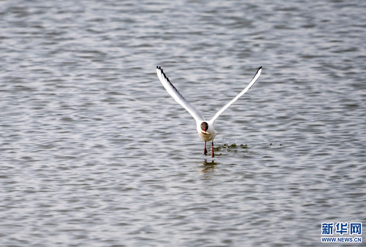 一只候鳥在土默特左旗海流水庫(kù)覓食休息。新華網(wǎng)發(fā)(陽(yáng)光 攝)