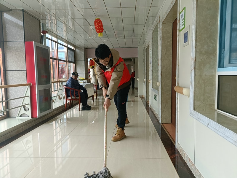 志愿者為敬老院義診、剪發(fā)、心理輔導(dǎo)、打掃房間等活動(dòng)。