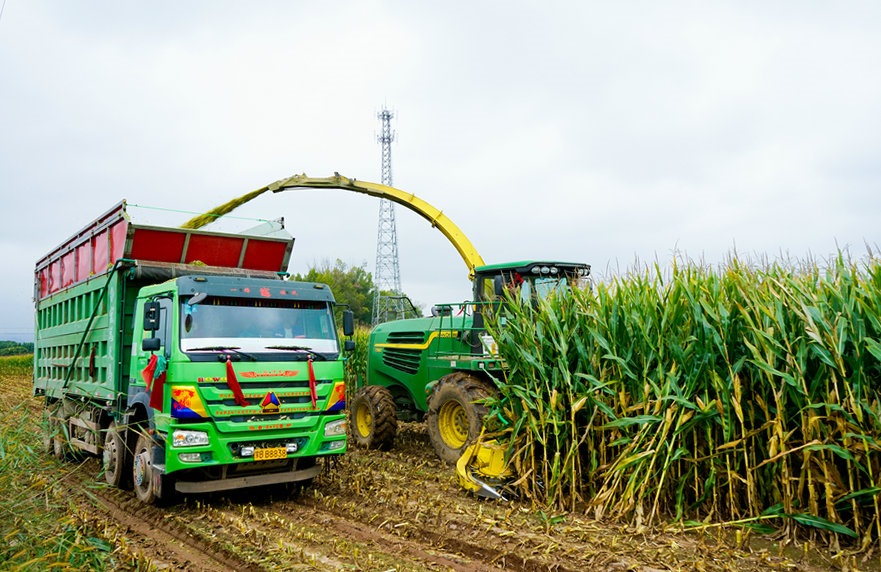 青貯玉米是把玉米植株全部收割下來經(jīng)過切碎、加工后用發(fā)酵的方法制作成青貯飼料的玉米,用來飼喂牛、羊等牲畜。這幾天,土默特左旗青貯玉米陸續(xù)進(jìn)入豐收季,收割工作全面啟動。