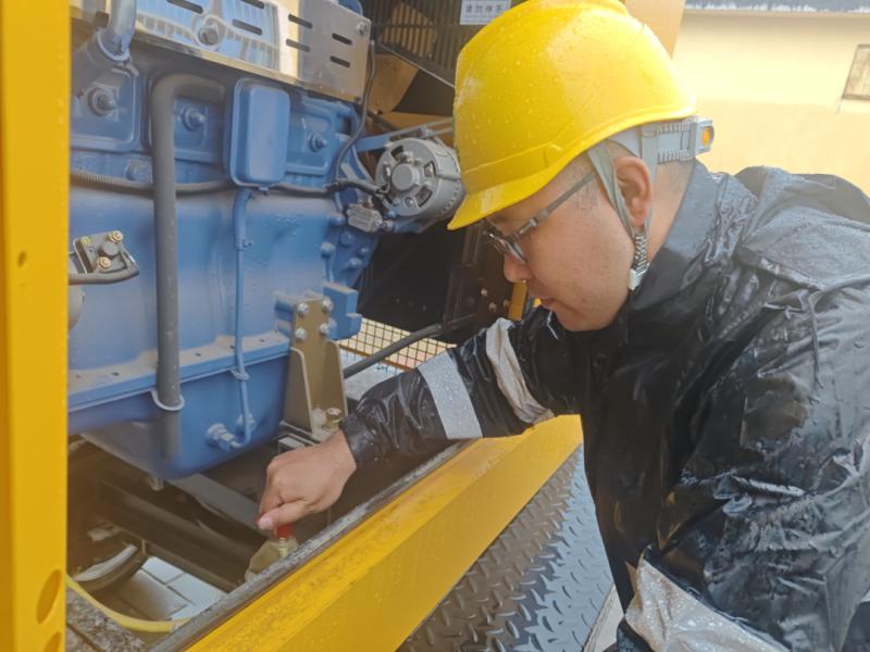 新城變電工區(qū)創(chuàng)業(yè)66千伏變電站運(yùn)維人員啟動(dòng)抽水車直流電源排出積水。(攝影:王磊)