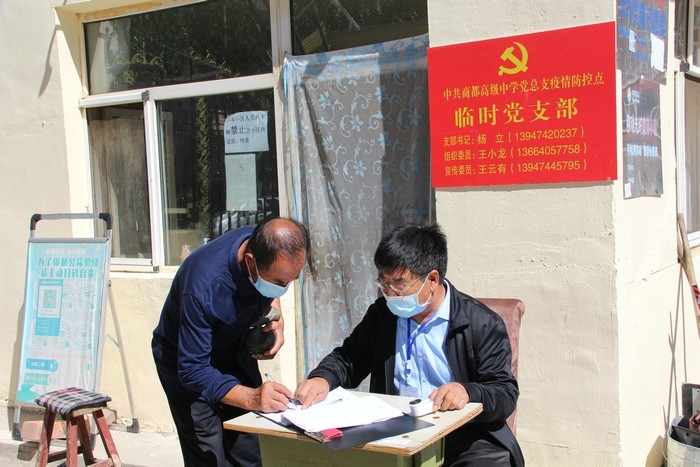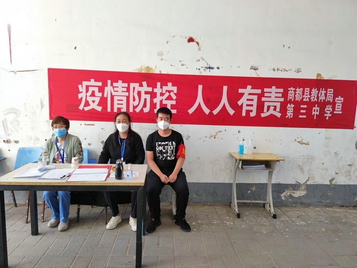 在學(xué)校站在三尺講臺(tái),拿起書本,面向孩子,他們是一名光榮的人民教師。走上抗疫一線,穿上白底藍(lán)邊的防護(hù)服,拿起測(cè)溫儀,他們是一名光榮的抗疫防疫工作者。以師者擔(dān)當(dāng),同心戰(zhàn)“疫”,眾志成城,商都必勝!