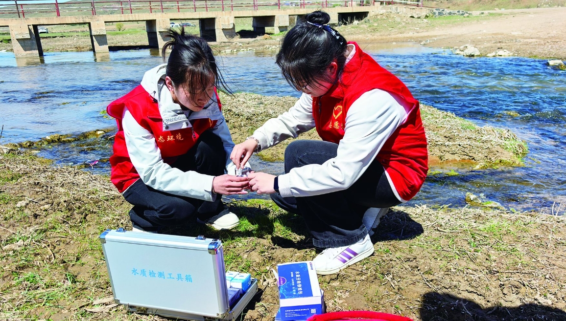 志愿者們用專(zhuān)業(yè)檢測(cè)設(shè)備開(kāi)展水質(zhì)檢測(cè)工作 馬佳敏 攝