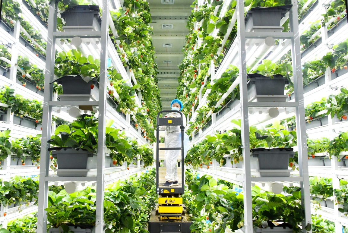 “目前,我們主要種植的有香野、越秀、粉玉等草莓品種?!惫ぷ魅藛T邊走邊介紹,不同于傳統(tǒng)種植模式,基地以四維生態(tài)科技有限公司創(chuàng)新的農(nóng)業(yè)4.0植物工廠解決方案為核心,打破了自然環(huán)境的限制,使得農(nóng)業(yè)生產(chǎn)不再受季節(jié)、地域等因素的影響,極大地提高了生產(chǎn)效率和資源利用率。