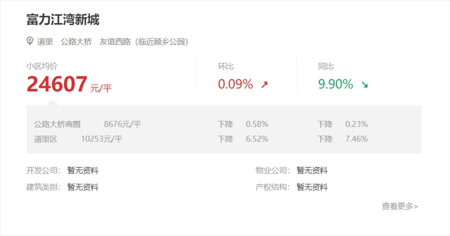 公開(kāi)信息顯示,富力江灣新城地處哈爾濱道里區(qū)沿江核心地段,項(xiàng)目一期于2014年10月29日完成交房。房天下數(shù)據(jù)顯示,富力江灣新城目前二手房均價(jià)為2.46萬(wàn)元/平方米。