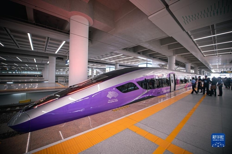 復(fù)興號(hào)亞運(yùn)智能動(dòng)車組開啟首次試乘。