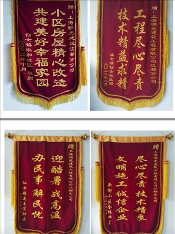 施工過程中,當(dāng)?shù)厣鐓^(qū)及居民給施工方送去的部分錦旗。受訪者供圖