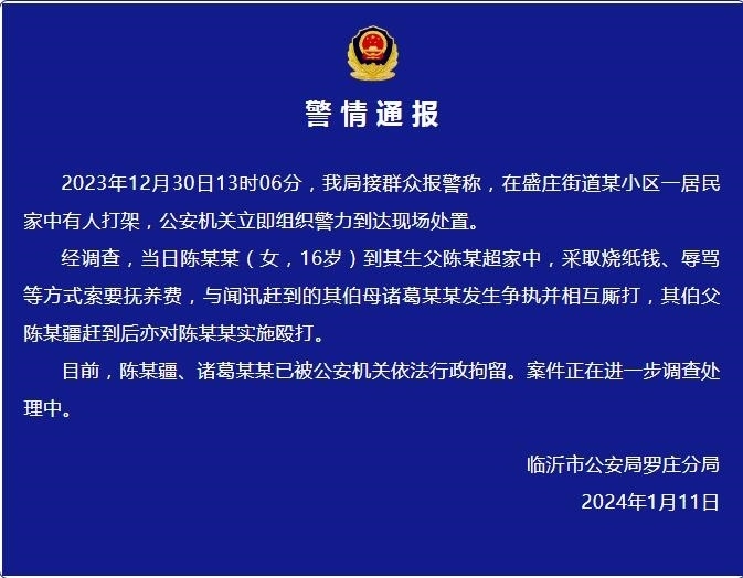 央視網(wǎng)消息:據(jù)“平安無(wú)棣”微信公眾號(hào)消息,網(wǎng)傳“一男子當(dāng)街毆打一女子”的視頻,系2023年10月10日在山東濱州無(wú)棣縣一步行街發(fā)生的一起傷人案件。當(dāng)日15時(shí)38分公安機(jī)關(guān)接警后,立即趕到現(xiàn)場(chǎng)依法處置,將被打者邵某雙(女,34歲)送醫(yī)治療,隨后抓獲犯罪嫌疑人田某國(guó)(男,36歲)。目前,傷者傷情平穩(wěn),犯罪嫌疑人田某國(guó)已被依法采取刑事拘留措施,案件正在進(jìn)一步偵辦中。