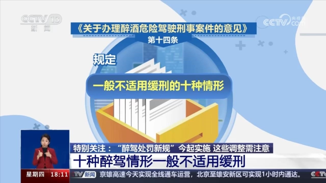 “醉駕處罰新規(guī)”開始實(shí)施:15種情形從重處理 10種情形一般不適用緩刑