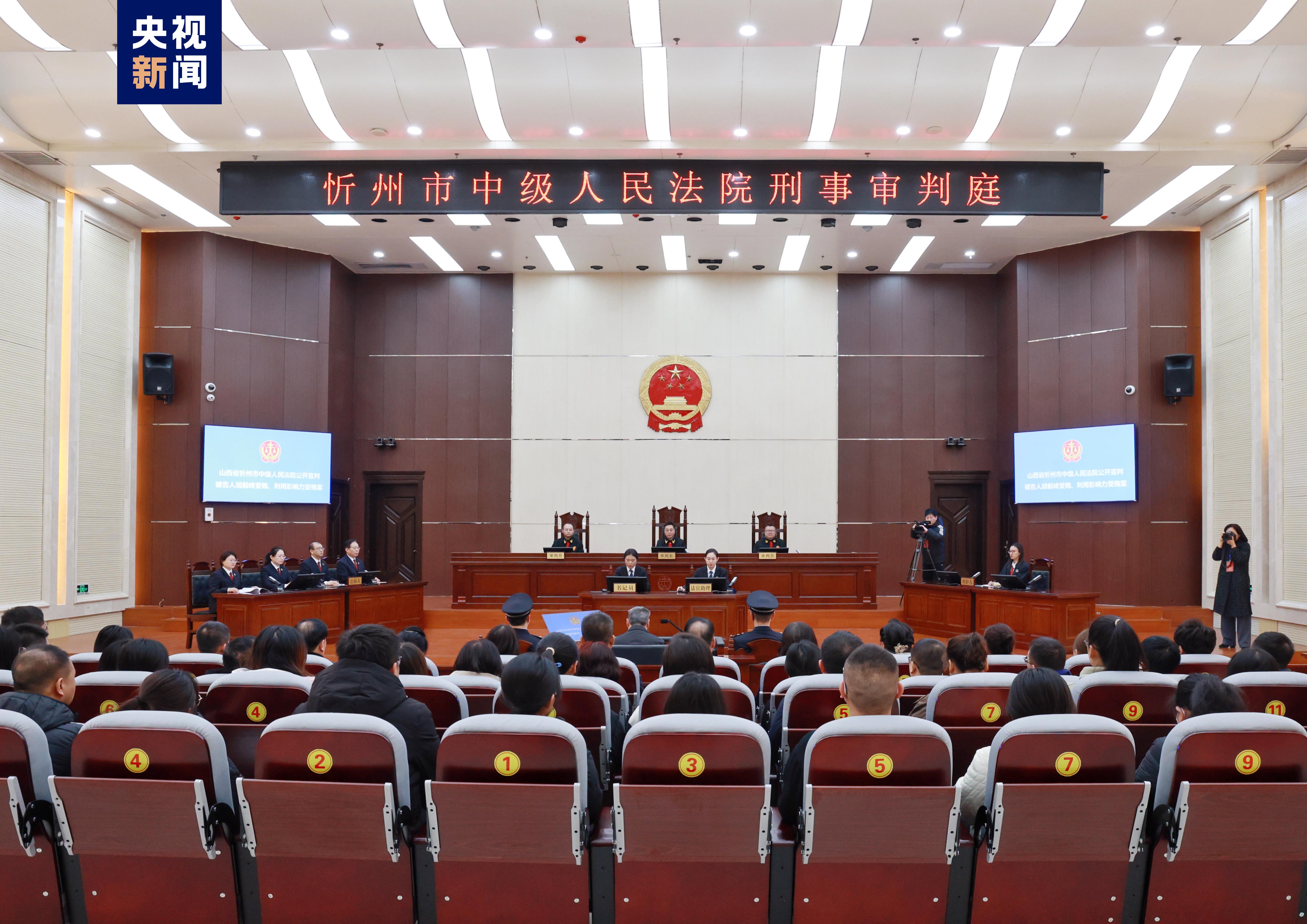 2024年1月9日,山西省忻州市中級(jí)人民法院一審公開宣判內(nèi)蒙古自治區(qū)高級(jí)人民法院原黨組書記、院長(zhǎng)胡毅峰受賄、利用影響力受賄一案,對(duì)被告人胡毅峰以受賄罪判處有期徒刑十三年,并處罰金人民幣三百萬元,以利用影響力受賄罪判處有期徒刑三年,并處罰金人民幣二十萬元,決定執(zhí)行有期徒刑十四年,并處罰金人民幣三百二十萬元;對(duì)查扣在案的胡毅峰犯罪所得財(cái)物及其孳息,依法予以追繳,上繳國(guó)庫(kù)。