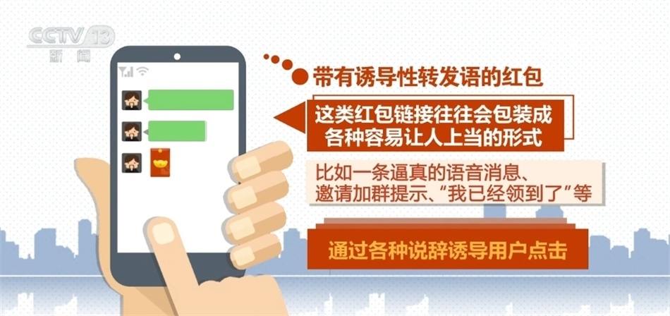 央視網(wǎng)消息:過年期間搶紅包“拼手速”成為一種新玩法。但一些不法分子卻打起了壞主意,制造了一些假紅包,企圖騙取錢財。公安機關(guān)提醒,如果看到這6種微信紅包千萬別領(lǐng)!