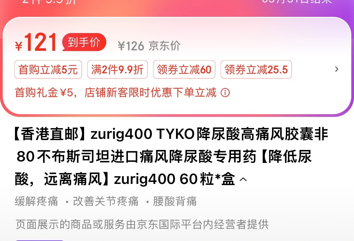 zurig400產(chǎn)品標題宣稱“痛風特效藥”