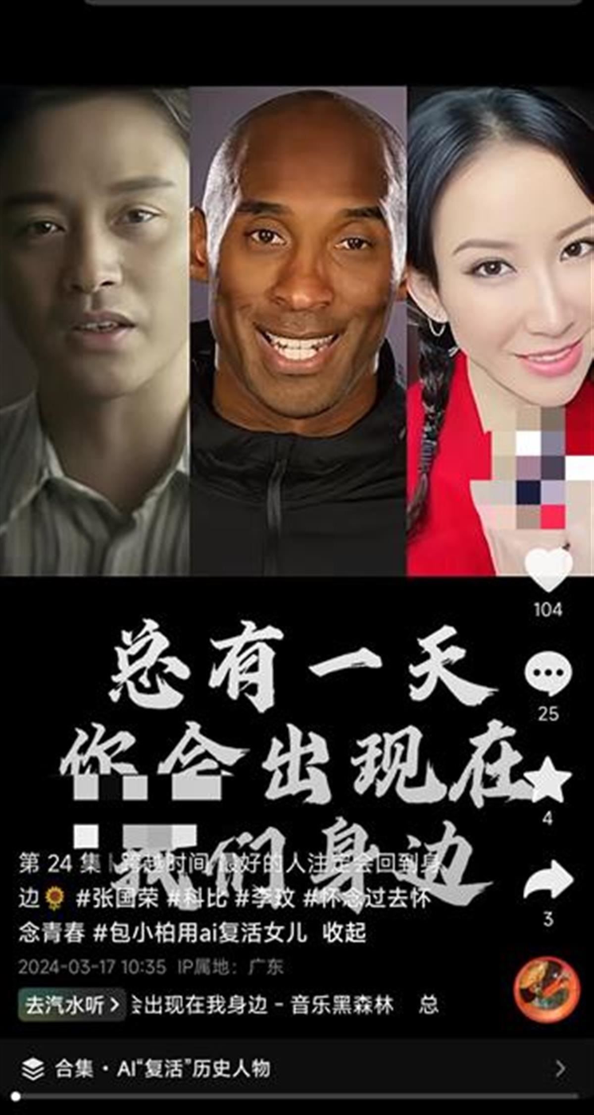在社交平臺(tái),類似的“AI復(fù)活師”賬號(hào)仍在活躍。這些賬號(hào)通過發(fā)布科比、李玟、張國榮等已逝名人的AI視頻吸引觀眾,并在簡介中聲稱可以通過AI技術(shù)定制數(shù)字人、克隆聲音、修復(fù)照片,還能“復(fù)活”已逝親人,定制他們的音頻視頻。目前,部分“AI復(fù)活師”的視頻已被平臺(tái)標(biāo)注“內(nèi)容疑似AI生成,請(qǐng)謹(jǐn)慎甄別”。