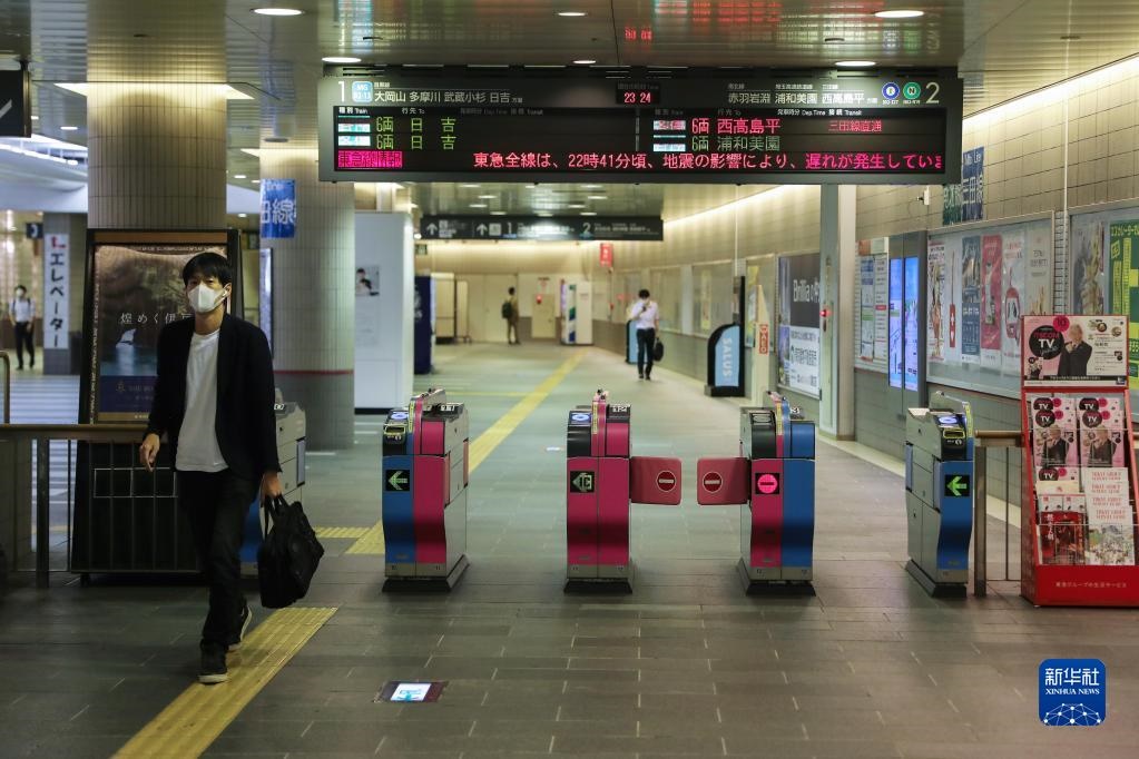 10月7日,在日本東京,一個車站的電子屏幕上顯示電車線路受地震影響延遲。據(jù)日本氣象廳消息,日本千葉縣西北部7日晚發(fā)生6.1級地震,東京地區(qū)震感強烈。新華社記者杜瀟逸攝