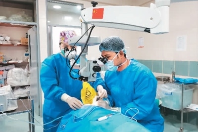 中方專家對當(dāng)?shù)蒯t(yī)生進(jìn)行手術(shù)指導(dǎo)。 (新華社發(fā))