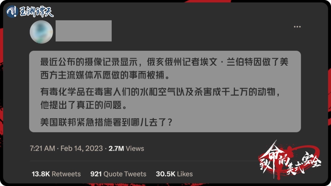 當(dāng)?shù)貢r(shí)間2月16日,美國(guó)又有一輛運(yùn)載有毒化學(xué)品的列車,發(fā)生了脫軌事故,一波未平一波又起,此前的脫軌事件,還在質(zhì)疑聲中無(wú)法善后收尾。
