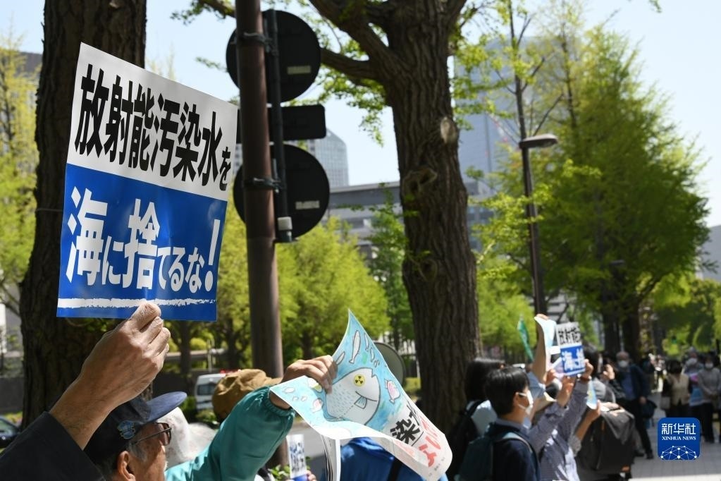 新華社東京4月13日電特寫:“核污染水的處理不能由日本政府擅作主張”——日本民眾集會抗議核污染水排海計劃