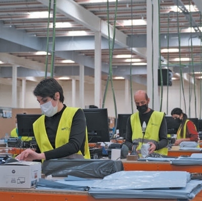 工作人員在西班牙瓜達拉哈拉市海外倉中工作。 孟鼎博攝(新華社發(fā))