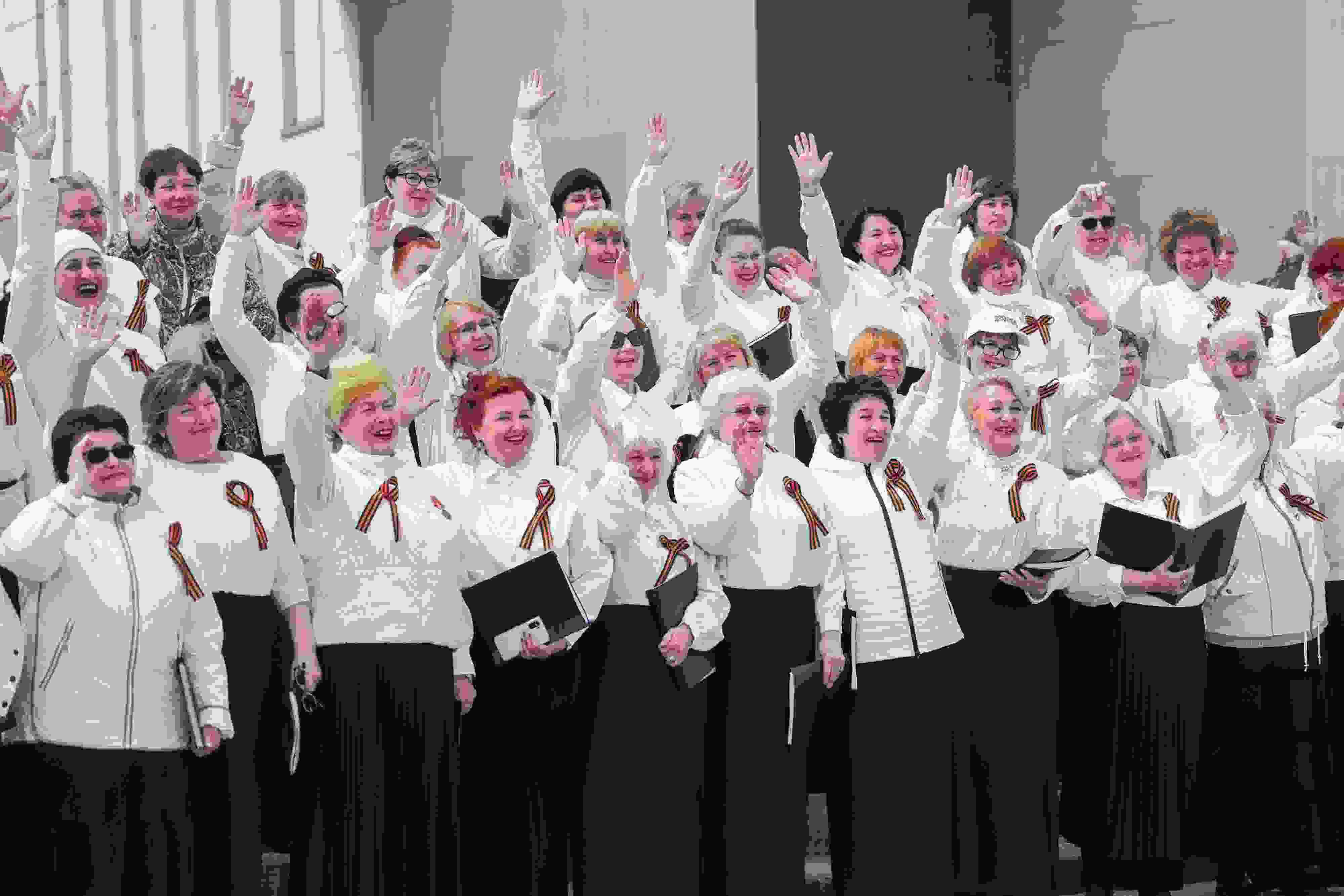 當(dāng)?shù)貢r(shí)間2023年5月8日,俄羅斯莫斯科,合唱團(tuán)在紀(jì)念二戰(zhàn)勝利78周年的音樂會(huì)上表演。 視覺中國(guó)