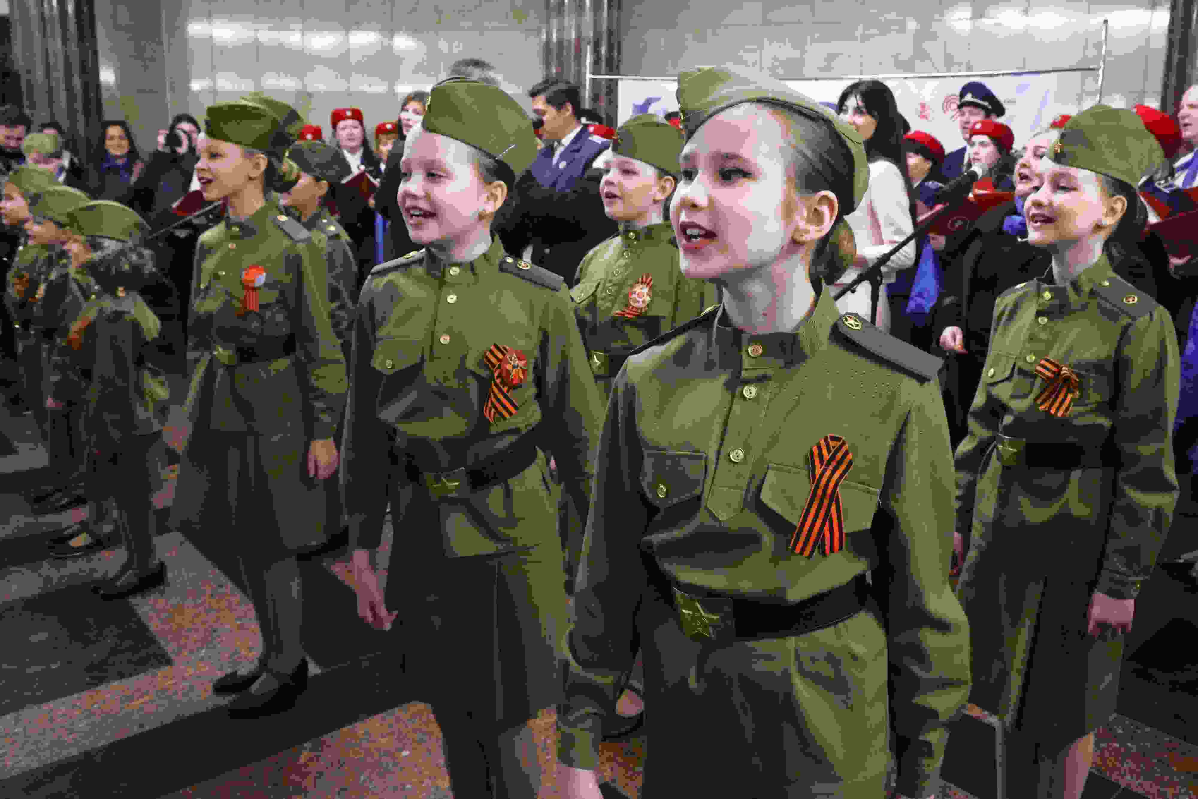 當(dāng)?shù)貢r(shí)間2023年5月8日,俄羅斯莫斯科,兒童在紀(jì)念二戰(zhàn)勝利78周年的音樂會(huì)上表演。 視覺中國(guó)