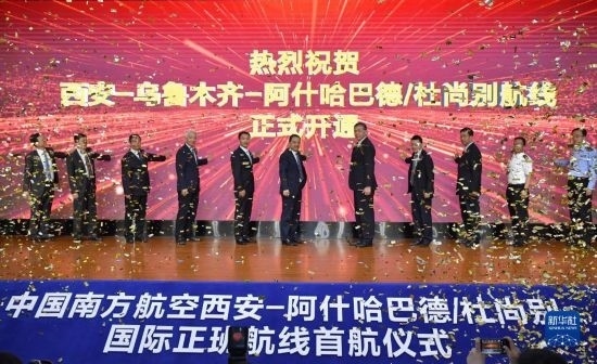 5月13日,西安-阿什哈巴德/杜尚別國際正班航線首航儀式在西安舉行。