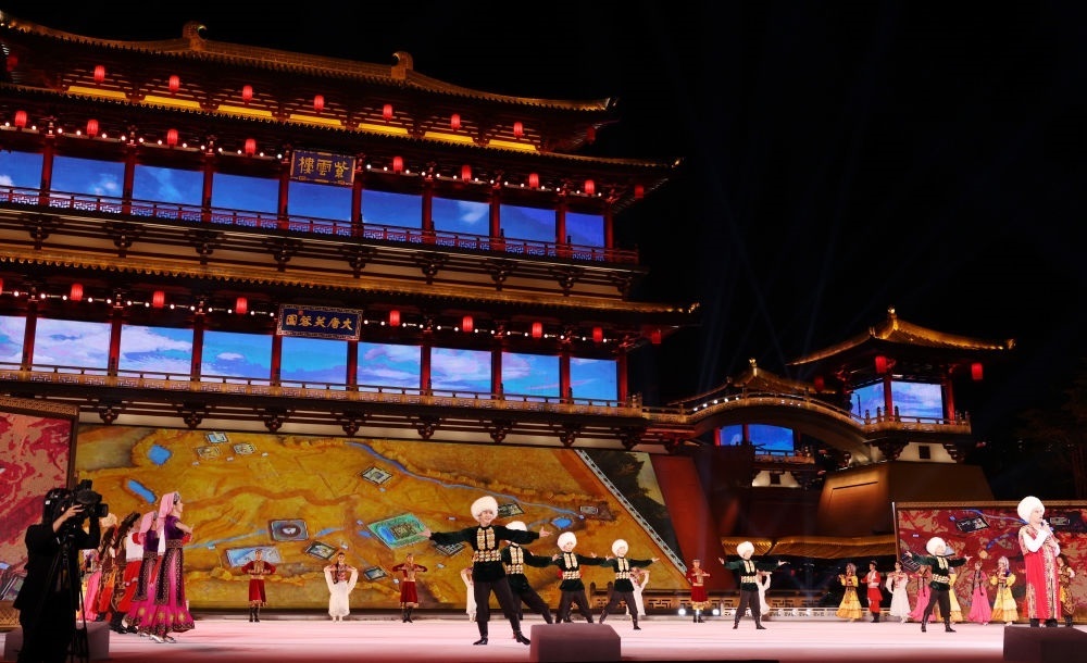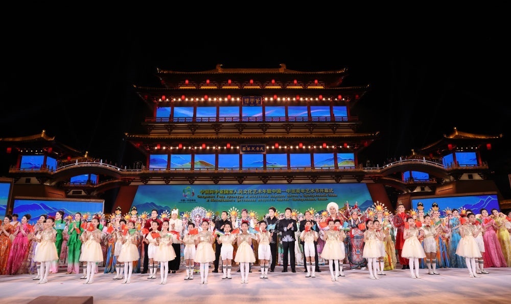 宴會(huì)后,習(xí)近平夫婦同貴賓們共同觀看中國(guó)同中亞國(guó)家人民文化藝術(shù)年暨中國(guó)-中亞青年藝術(shù)節(jié)開(kāi)幕式演出。