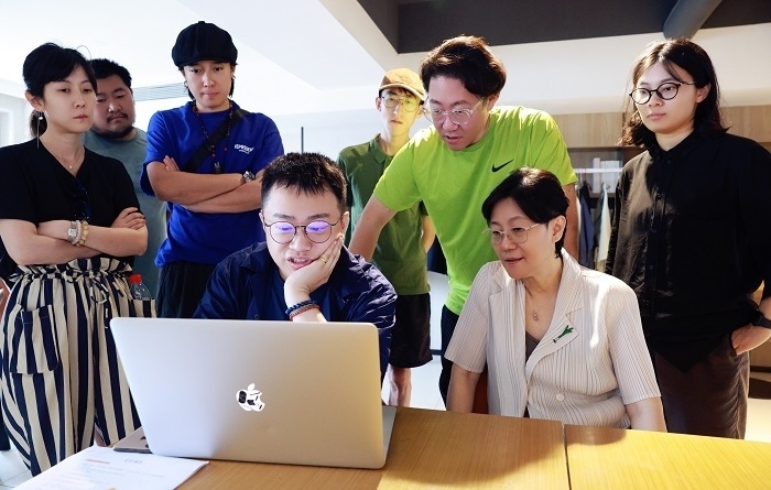 這張照片美好動人,充滿著彼此尊重、珍愛的師生情誼。能夠精準地捕捉到這樣稍縱即逝的人物情感交流,一方面離不開老師的扮演者,中國白蘭地首席大師張葆春在劇中的本色出演,另一方面也顯然得益于拍攝之前田雨峰進行的背景調(diào)查和資料準備工作。向張葆春老師請教釀酒知識,了解“學生”文文(錢冬旎飾)對角色和人物關(guān)系的理解,這些細致、瑣碎甚至看起來不甚必要的準備過程,是最終劇照能在觀眾面前精準呈現(xiàn)、動人表達的必要條件。