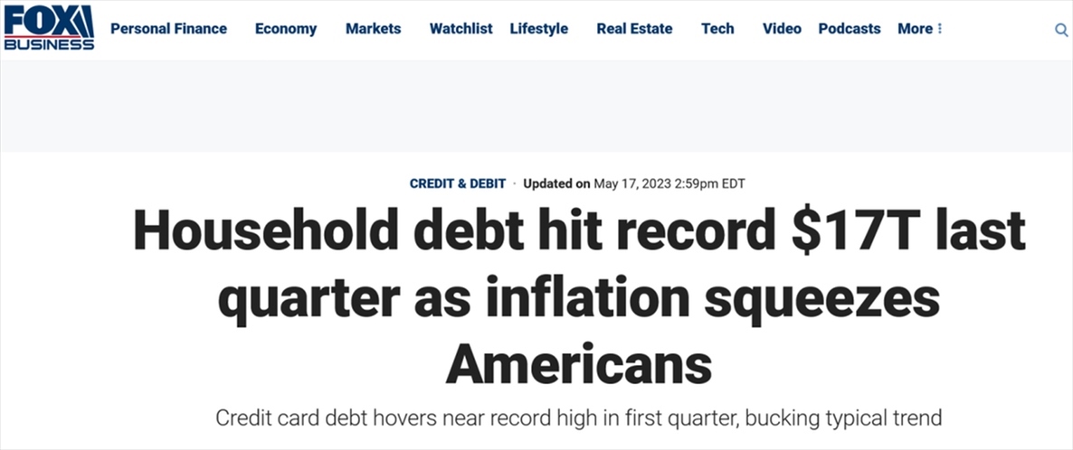 【瞰全球】“債臺高筑”、被通脹“榨干”!一季度美國家庭債務總額破紀錄