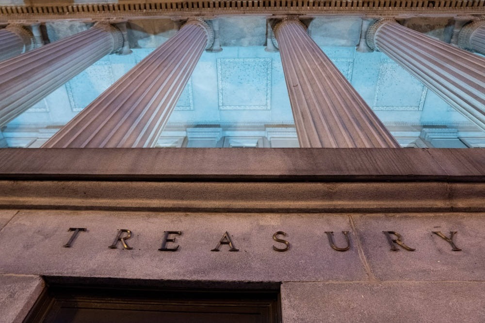 這是1月20日在美國首都華盛頓拍攝的財(cái)政部大樓。(新華社記者劉杰攝)