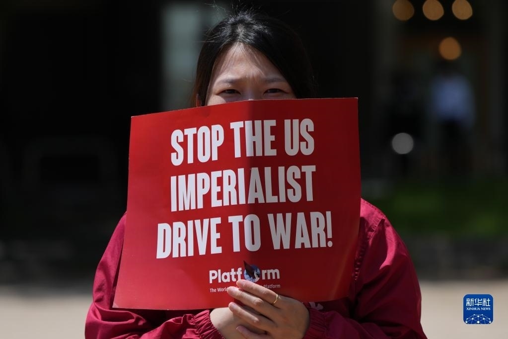 5月21日,民眾聚集在日本廣島袋町公園,抗議七國(guó)集團(tuán)峰會(huì)。   新華社記者 張笑宇 攝