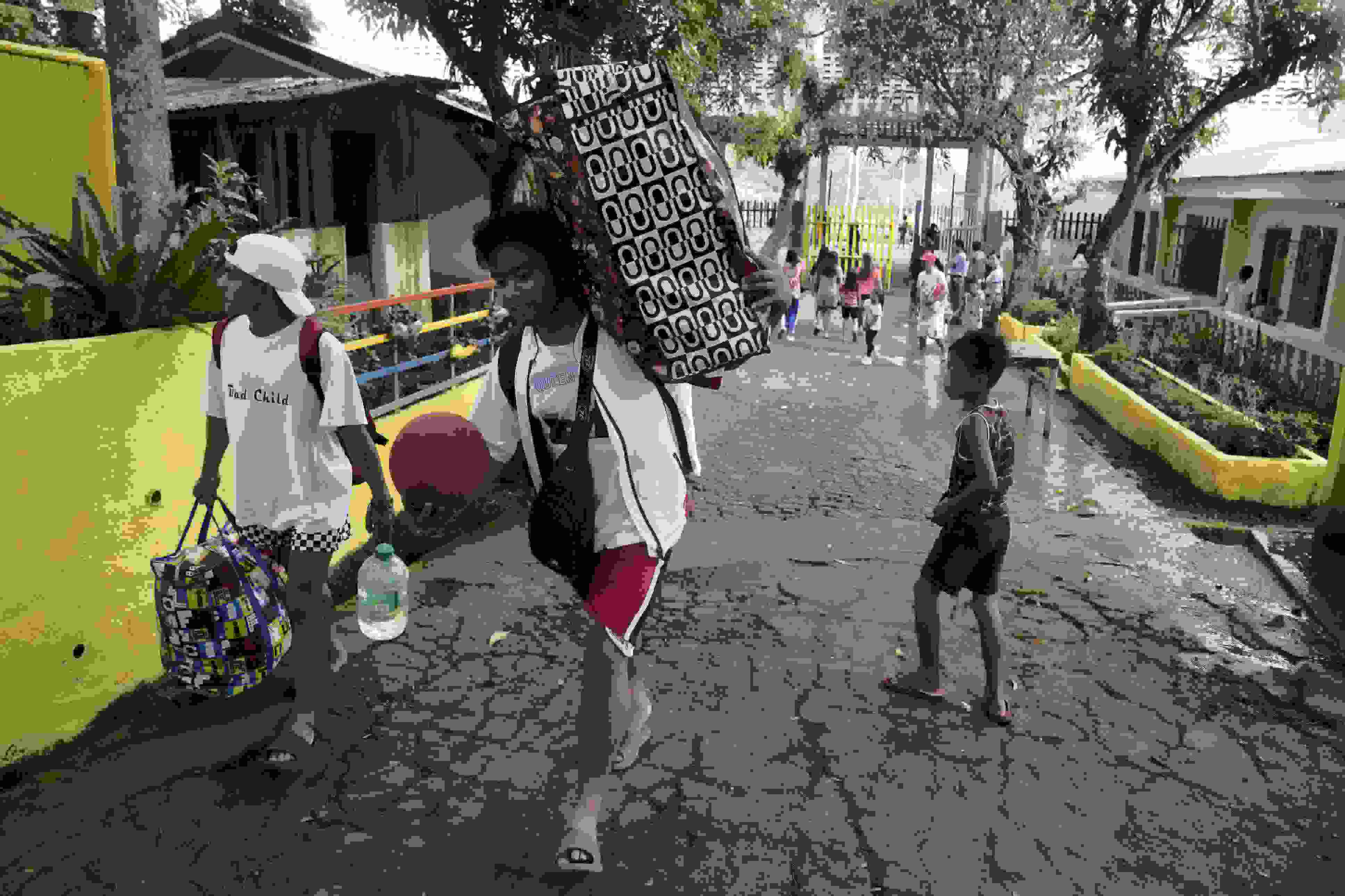 當?shù)貢r間2023年6月10日,菲律賓阿爾拜省,撤離人員帶著他們的物品抵達臨時安置點。 視覺中國