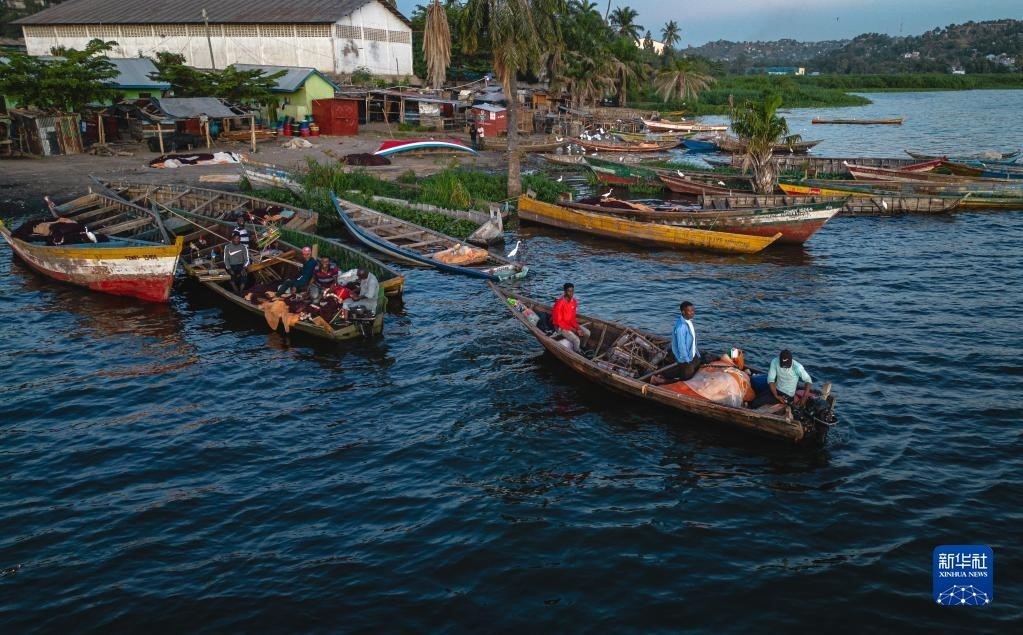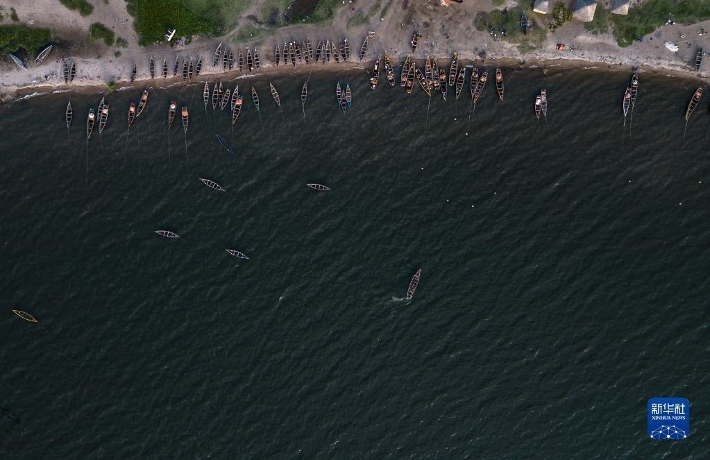 這是6月14日拍攝的坦桑尼亞姆萬(wàn)扎省維多利亞湖畔的漁船(無(wú)人機(jī)照片)。