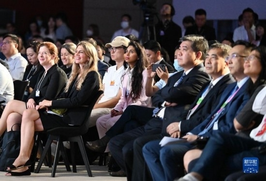 這是6月29日拍攝的第十四屆夏季達沃斯論壇閉幕全會現(xiàn)場。新華社記者 趙子碩 攝