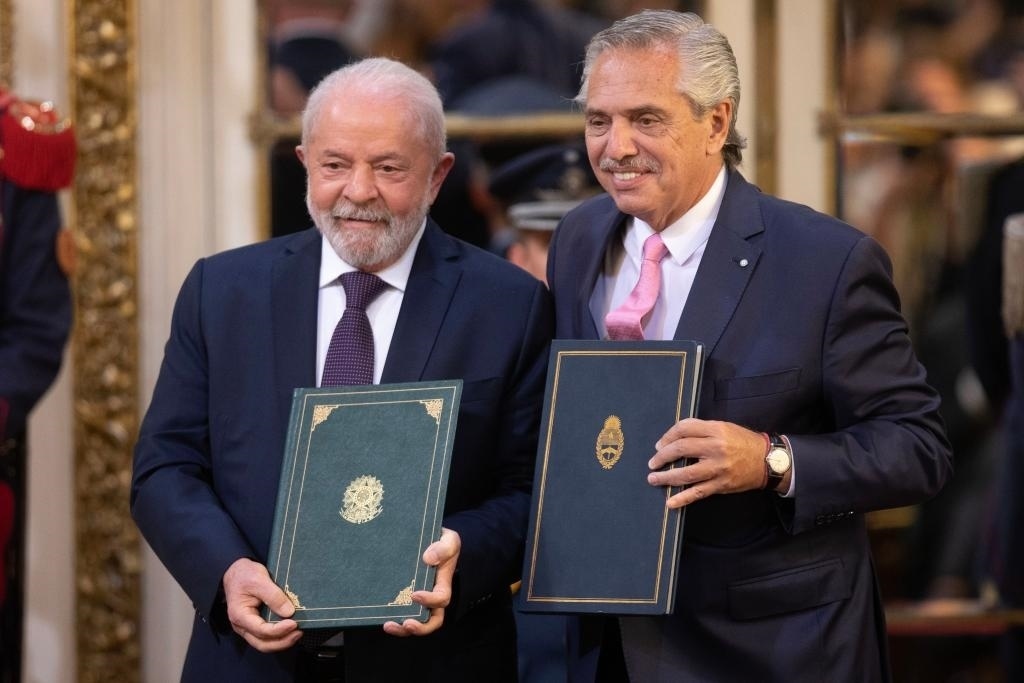 今年1月23日,在阿根廷布宜諾斯艾利斯,阿根廷總統(tǒng)費爾南德斯(右)和巴西總統(tǒng)盧拉共同出席新聞發(fā)布會。新華社發(fā)(馬丁·薩巴拉攝)