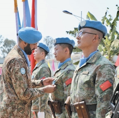 今年是中國赴剛果(金)維和任務(wù)20周年。日前,中國第二十六批赴剛果(金)維和部隊(duì)全體官兵被授予聯(lián)合國“和平勛章”,這是聯(lián)合國表彰維和人員的最高榮譽(yù)。