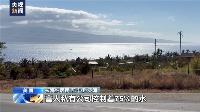 拉海納居民 凱卡伊·克海:每年夏天的時(shí)候,因?yàn)闆](méi)有足夠的淡水資源,我們?cè)∶穸济媾R用水限制,所有的普通民眾都要限制用水??稍谀切┧饺颂貦?quán)地區(qū)、度假酒店里的高爾夫球場(chǎng),一切用水都是正常的。我們多年來(lái)一直在討論這個(gè)不平等的問(wèn)題,富人私有公司控制著75%的水,我們當(dāng)?shù)孛癖娭挥?5%的水,所以你不能說(shuō)沒(méi)有水就是我們的責(zé)任,這不是我們的問(wèn)題。