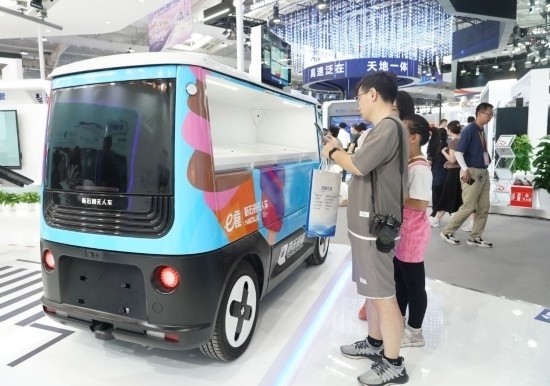 新能源無人雪糕車、多功能智慧路桿……在北京首鋼園專題展區(qū),北京亦莊經(jīng)濟技術開發(fā)區(qū)帶來的數(shù)字服貿(mào)創(chuàng)新成果吸引觀眾目光。