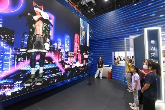9月3日,一名參觀者在首鋼園中國移動展臺體驗基于AR/VR特效的敦煌導覽,沉浸式感受敦煌壁畫的魅力。新華社記者 李鑫 攝